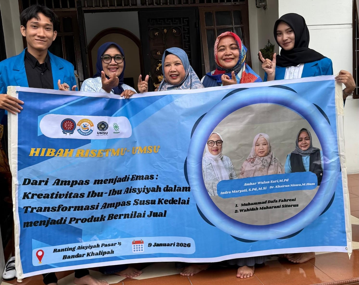 Kegiatan ini dilaksanakan bersama kelompok ibu-ibu Aisyiyah di Pasar 4 Bandar Khalipah yang selama ini telah memproduksi susu kedelai rumahan. Namun, ampas hasil produksi kerap terbuang dan belum dimanfaatkan secara optimal. Melalui program pengabdian ini, limbah tersebut diolah kembali menjadi produk pangan inovatif yang memiliki nilai jual di pasaran.
